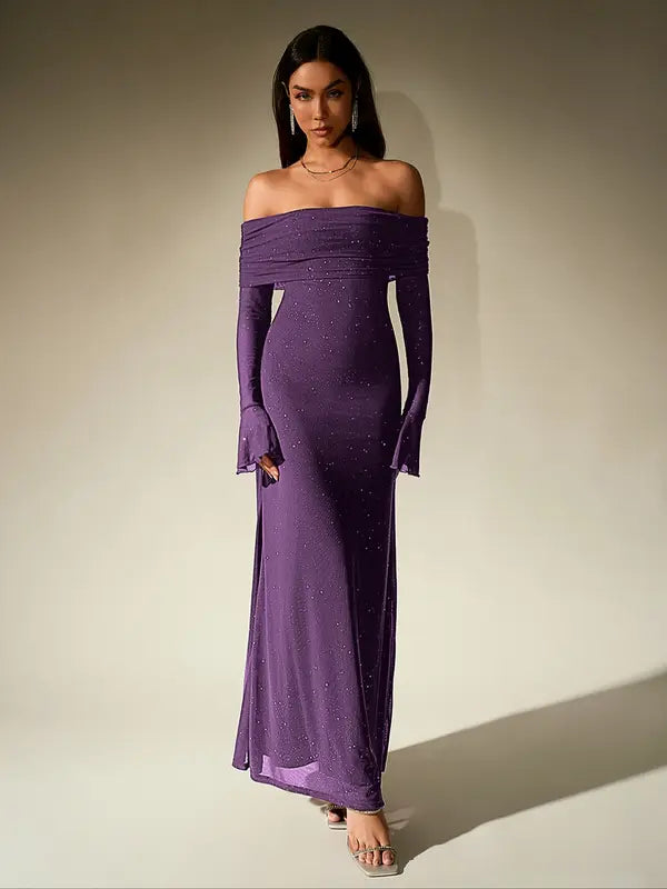 ANDREA™ - Women's Off-The-Shoulder Ruched Contrast Sequin Bodycon Dres – Maven Boutique