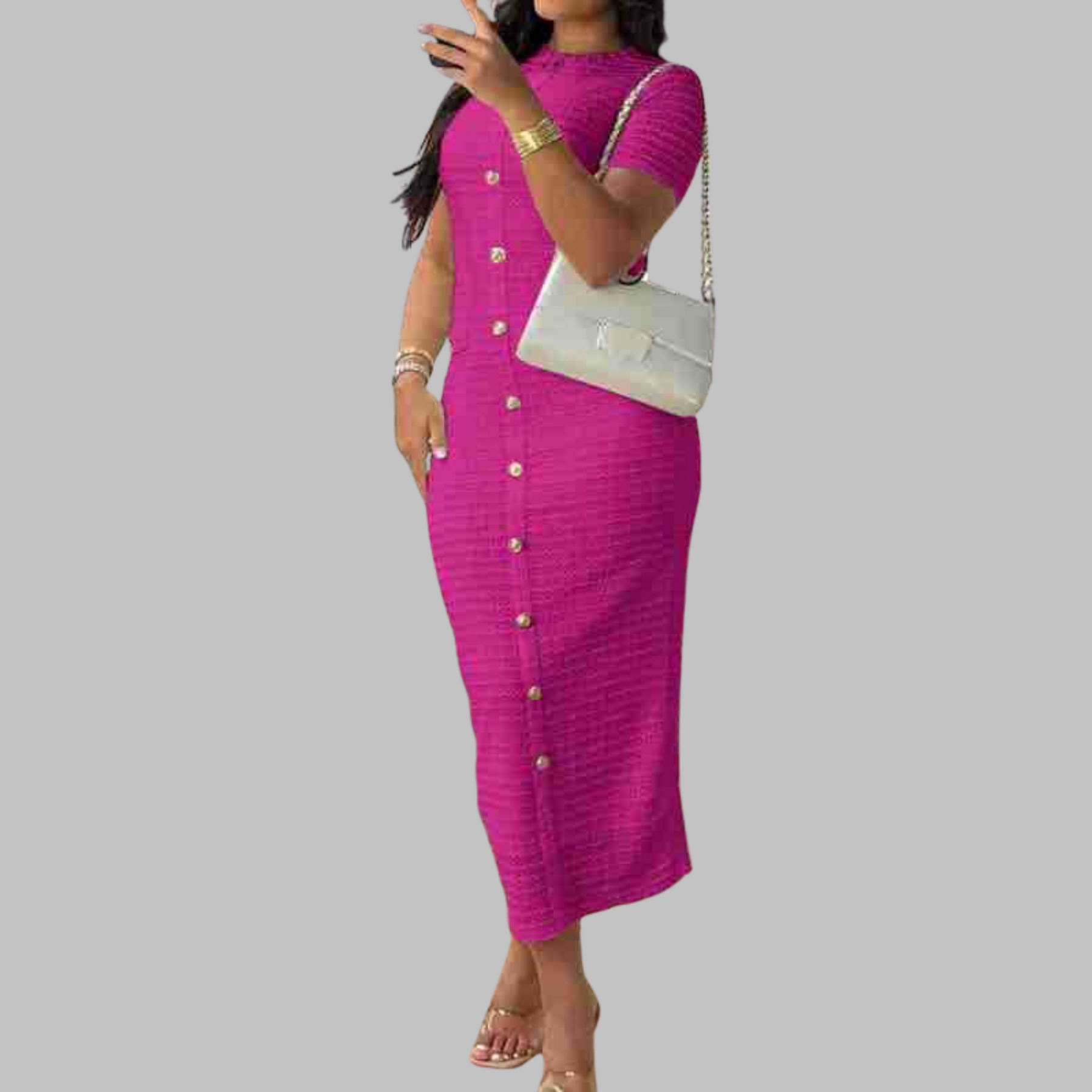 Introducing the REGAN™ – Elegant Round Neck Fake Button Dress, a timeless piece that beautifully balances classic charm with modern flair. Crafted for the woman who appreciates subtle details, this dress transitions seamlessly from day to evening wear. With its graceful silhouette and understated elegance.